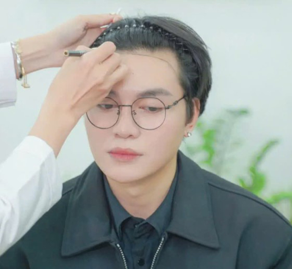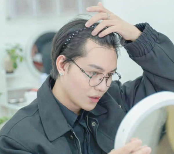 Cường Jin: “Khoảng vài năm trở lại đây mình bắt đầu nhận thấy hai bên góc trán lùi dần, hình thành hói chữ M. Ban đầu mức độ còn nhẹ nên mình chưa quá để ý. Nhưng càng về sau do đặc thù công việc thường xuyên vuốt tóc, dùng nhiều gôm, keo xịt và hóa chất tạo kiểu nên tình trạng rụng tóc rõ hơn.